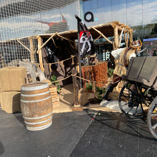 Ce projet s'inscrit dans une thématique pirate, avec une intervention répartie sur quatre espaces distincts du centre commercial Waves à Metz. Pour donner vie à cet univers, nous avons conçu des décors immersifs : des scènes de pirates en mer, leur cellule, une aventure dans la jungle et l'ambiance animée d'une taverne.